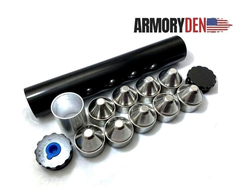 | Additional Information: | A solvent trap is a firearm cleaning system that is designed to capture (or “trap”) cleaning solvent during the bore cleaning process, in order to transport and dispose of it efficiently, safely and in an environmentally friendly manner. Solvent traps attach to a firearms muzzle and feature cups, also referred to as dry storage cups, dividers, among other interchangeable names. Solvent traps are designed in a way that ensures a bullet may not pass through them. The BATF defines a solvent trap as a “firearm cleaning accessory”, but to make certain that a solvent trap remains within the BATF’s “firearm cleaning accessory” definition, it should be clear that they are constructed to serve such a purpose. Our solvent traps are designed and manufactured to serve one primary purpose, which is as a firearm cleaning system. We do not endorse, support or recommend using our solvent traps or solvent trap dry storage cups to silence, muffle or diminish the report of a firearm. Rather than selling our solvent trap tubes, dry storage cups and end caps separately, our solvent trap cleaning kits include all parts needed, and they are sold for cleaning purposes only. Modifying our products and/or using them for any other uses are not recommended or endorsed by Armory Den. Solvent traps can be purchased legally without a Form 1. However, you cannot alter, modify, or redesign them into a device for muffling, silencing, or diminishing the report of a firearm without first, paying the NFA Mandated $200 Tax Stamp (if applicable) and receiving back an approved From 1 from the BATFE. Please be aware of the restrictions and regulations and those within the states you reside. Only after getting the approved Form 1 back can you make any modifications to the product. A crime is committed if you make the alterations before obtaining the tax stamp. |